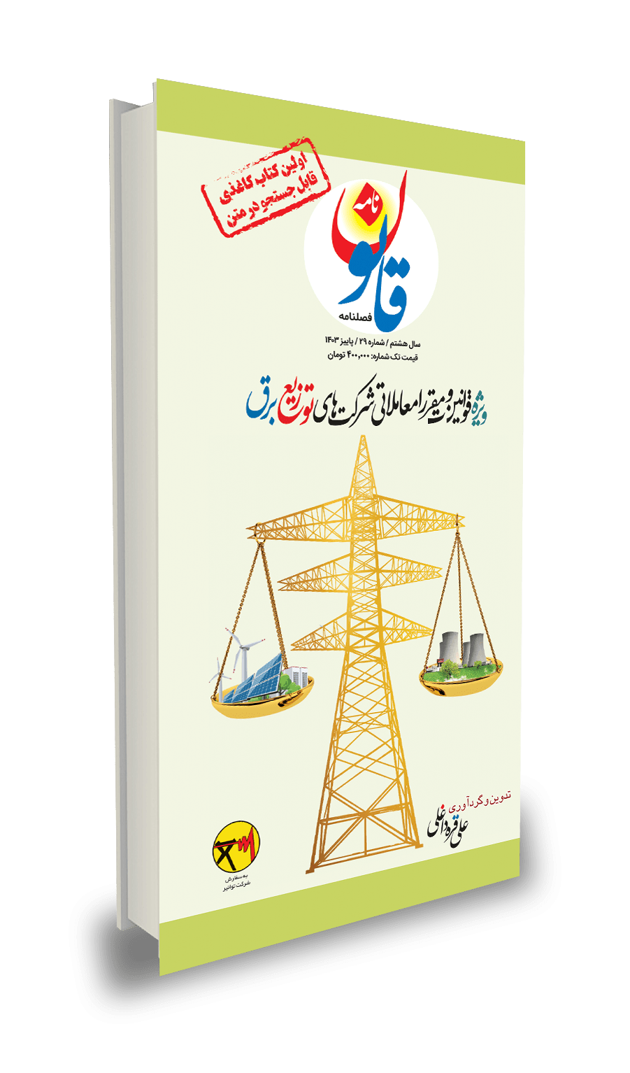 نسخه چاپی (کاغذی ) (پاییز ۱۴۰۳ ) کتاب قوانین و مقررات معاملاتی شرکت های توزیع برق به چاپ رسیده است ؛ فصلنامه قانون نامه به مانند روال سال های گذشته تصمیم به انتشار نسخه الکترونیک این مجموعه قوانین گرفت که در پیش روی شماست با نصف قیمت روی جلد !